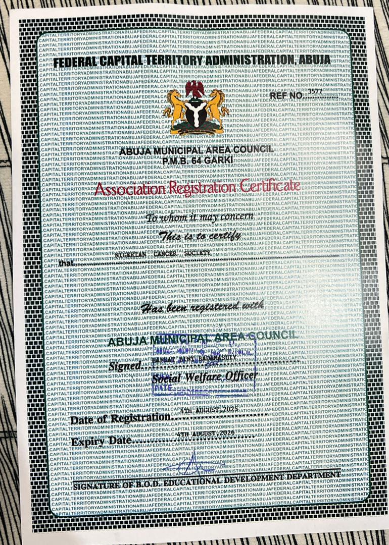 The Nigerian Cancer Society is dedicated to eliminating cancer as a major health problem through prevention, advocacy, research, and training.